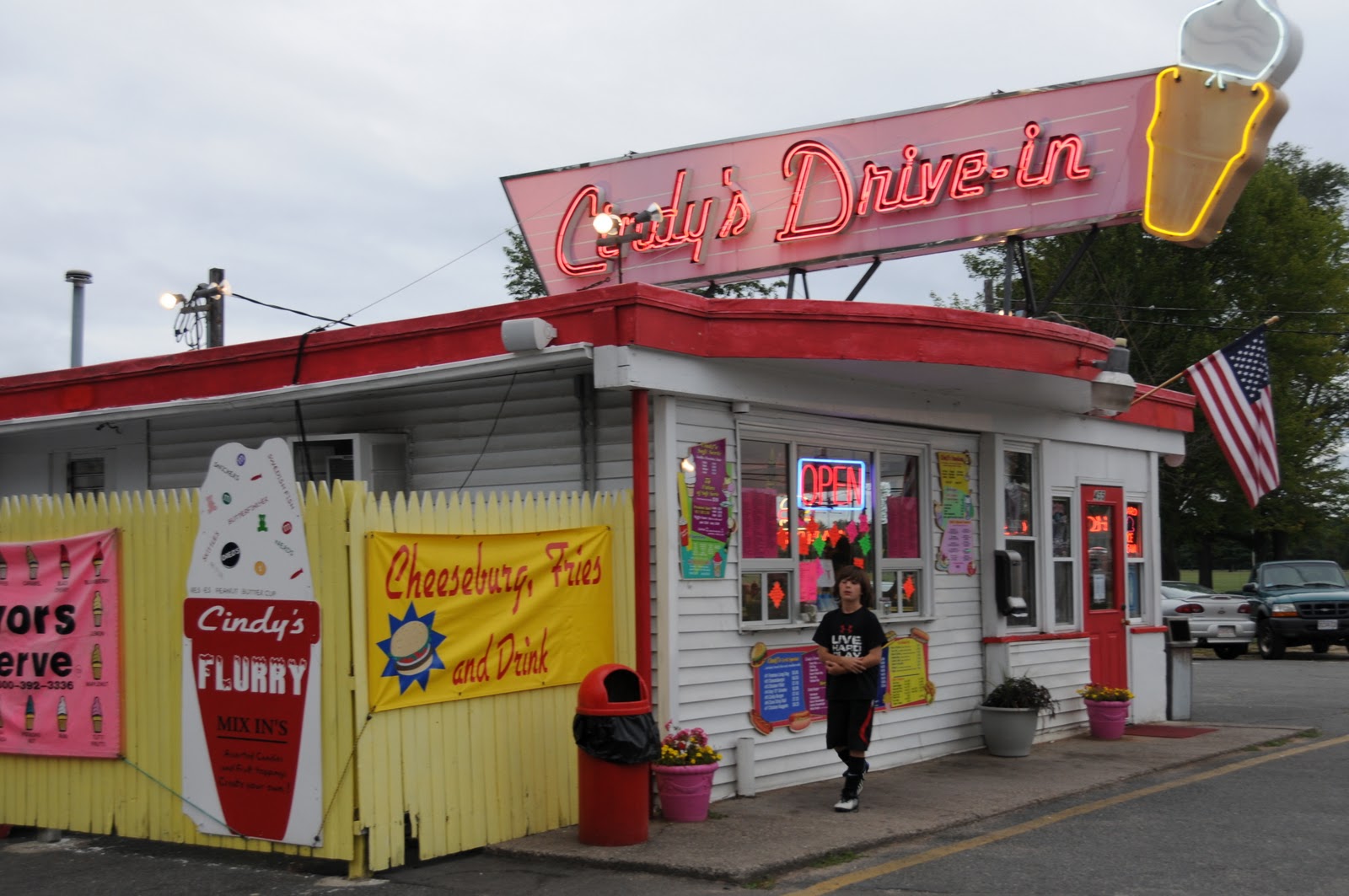 This week at You Capture they have challenged us to take photos of signs. Here is my favorite sign in the neighborhood. A great sign is something that catches your eye —- makes you WANT to stop there and Cindy’s Drive-in does just that! The colorful signs and building are just so fun! The ice cream is amazing and there is a playground in the back! Schuyler’s sister Samantha took her here when he was 5 and he just LOVES to go here as much as possible during the season. So sad at the end of the fall season they close for the winter.