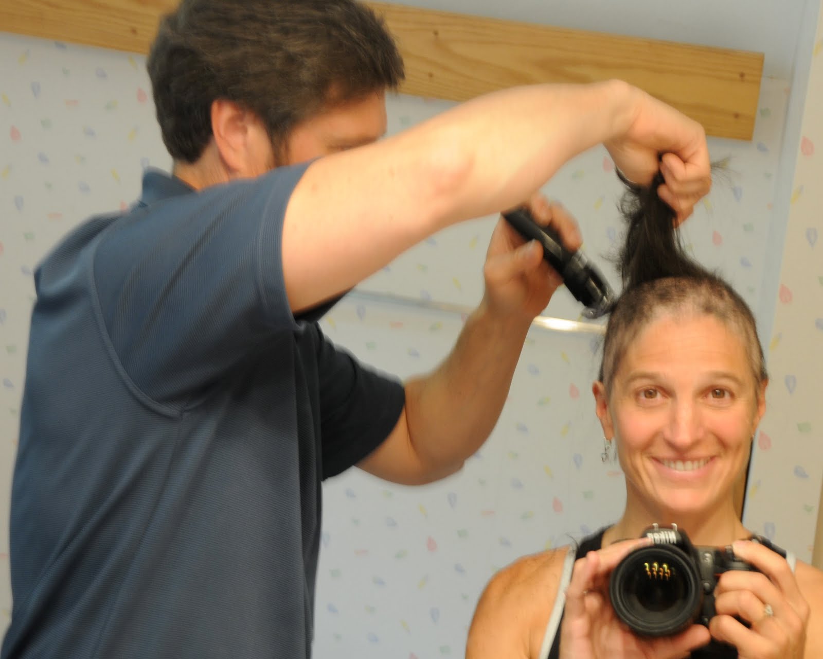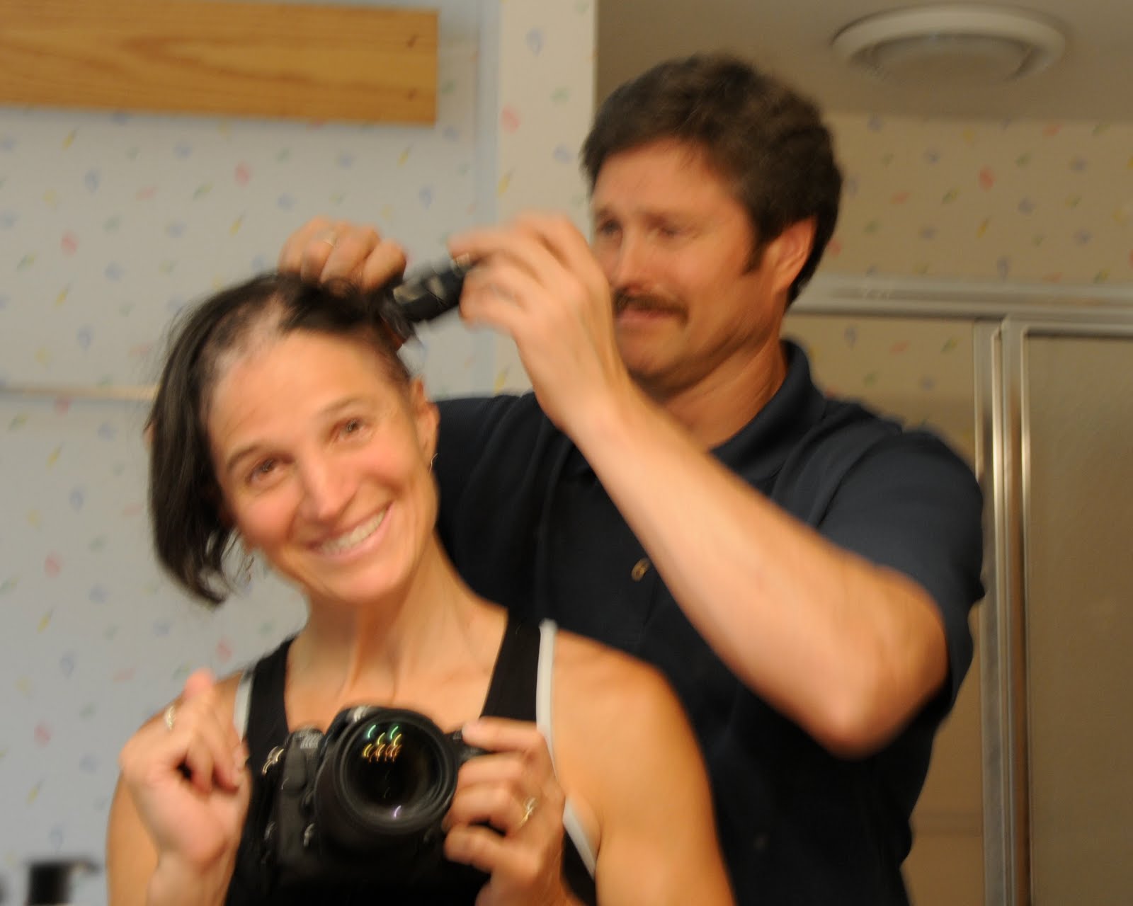 We did NOT have a shaving party — so I am bringing the experience to you on Smilebox (trying it out for the first time and Hoops & Yoyo is my fave)…. SO here you go. My sweet husband Steve has been there through all the tears and smiles and anguish and anxiety and has truly helped me tough this thing out! Enjoy it — freaky for me to experience, and my head feels like a pin cushion of stubble….. really hard to explain and no you don’t really want to experience this. I definitely never wanted to — but here I am larger than life in my own slideshow.