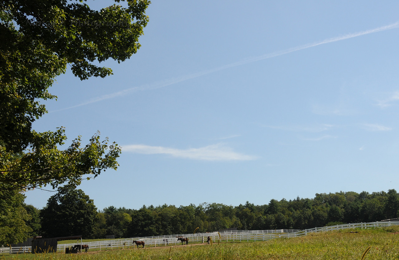 From one of my favorite 6 mile running loops – “The Orchard Hill Loop” on Orchard Hill Road in our town.  There is this amazing horse farm that you can see the landscape for miles and miles.  The white fences are so beautiful and the horses in the fields just help to make this spot picturesque.  I ventured there in my car today with my camera and captured this wonderful peaceful spot. 🙂