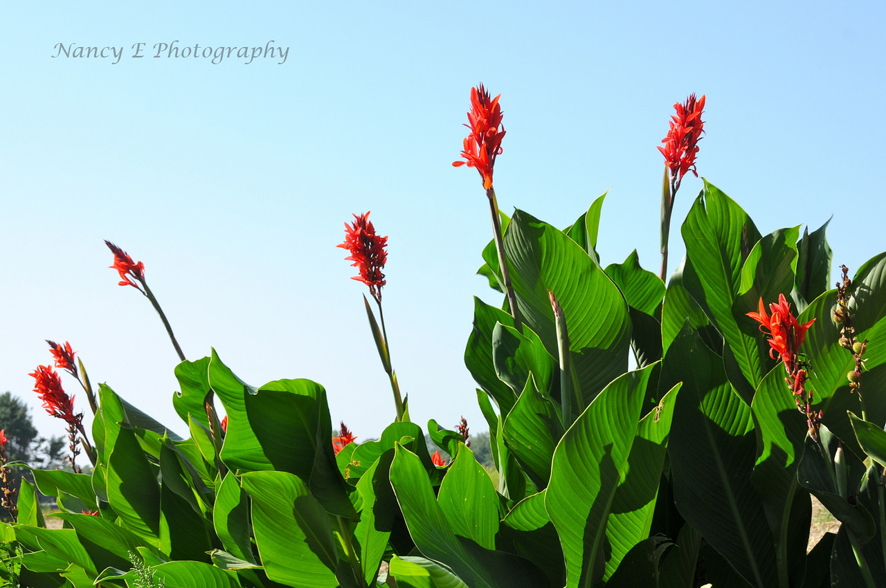 These beautiful flowers we pass on the way to the boat in Hadley, MA.  I love the red against the blue sky.