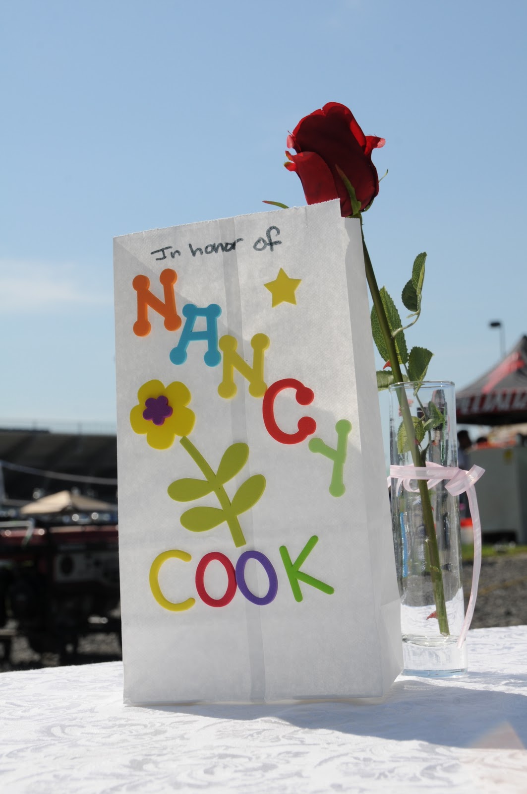 The survivor speaker recently had moved to this area and was a friend of one of the committee members. She had participated in the Virginia Beach Relay (One of our top Relay events in the country!) and she was so excited to be invited because she wouldn’t miss a Relay. Her speech was short and sweet, poignant and clear. She is a SURVIVOR. She celebrates because SHE IS HERE. She fights because the gene she has for breast cancer could be passed down to her beautiful daughters and potentially her son’s children. I wish I could remember all her words, because it was so well said — and it meant so much to me. I don’t know if I hear all these words differently because I have cancer, or she was just so great (I think it is for BOTH reasons)— She encouraged us all to talk to eachother, share our stories, offer support and be strong. I have a great photo of her and her family below. Such a sweet woman and a great family. I felt truly blessed to hear her speak that day.